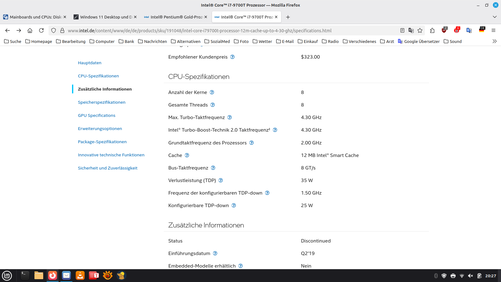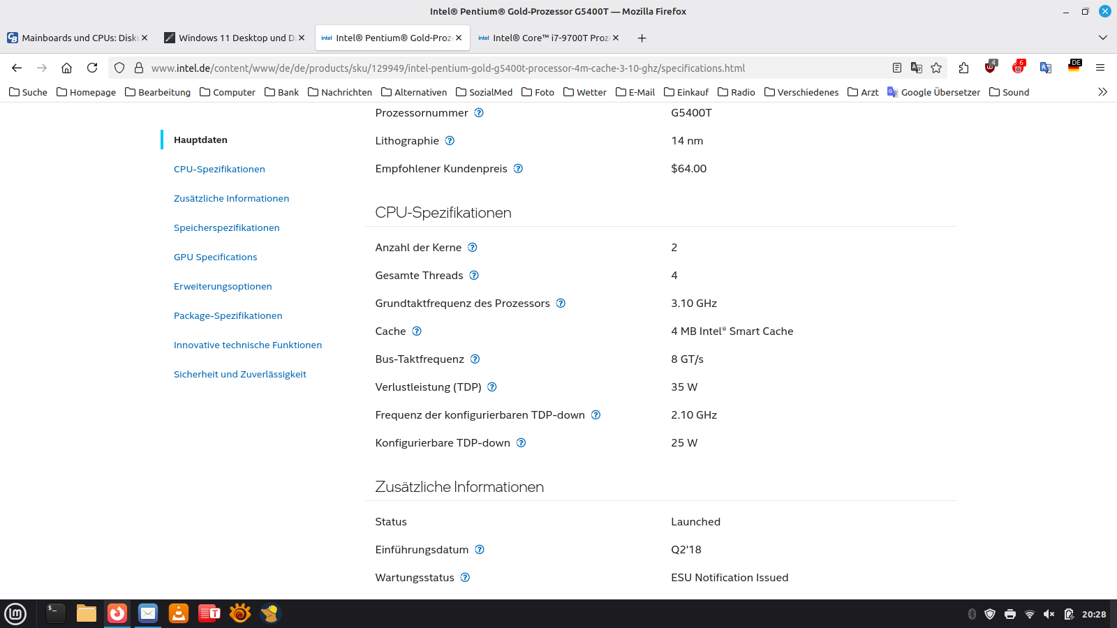 ich habe 2 Mini-PC Fujitsu Esprimo Q958 vor mir stehen. Beide sind hardwaremäßig bis auf die CPU identisch. Einer hat einen Pentium Gold G5400T, der andere einen Core I7 9700T. Beim Core musste ich die Turbo-Funktion im Bios deaktivieren, da er sonst unter Umständen extrem laut wird. Die Daten der CPU habe ich angeheftet. Gefühlt ist der Pentium schneller beim Öffnen der Programme und beim Rippen einer CD gleichwertig. Liegt das an der niedrigeren Grundtaktfrequenz des Core oder habe ich mich einfach nur geirrt?