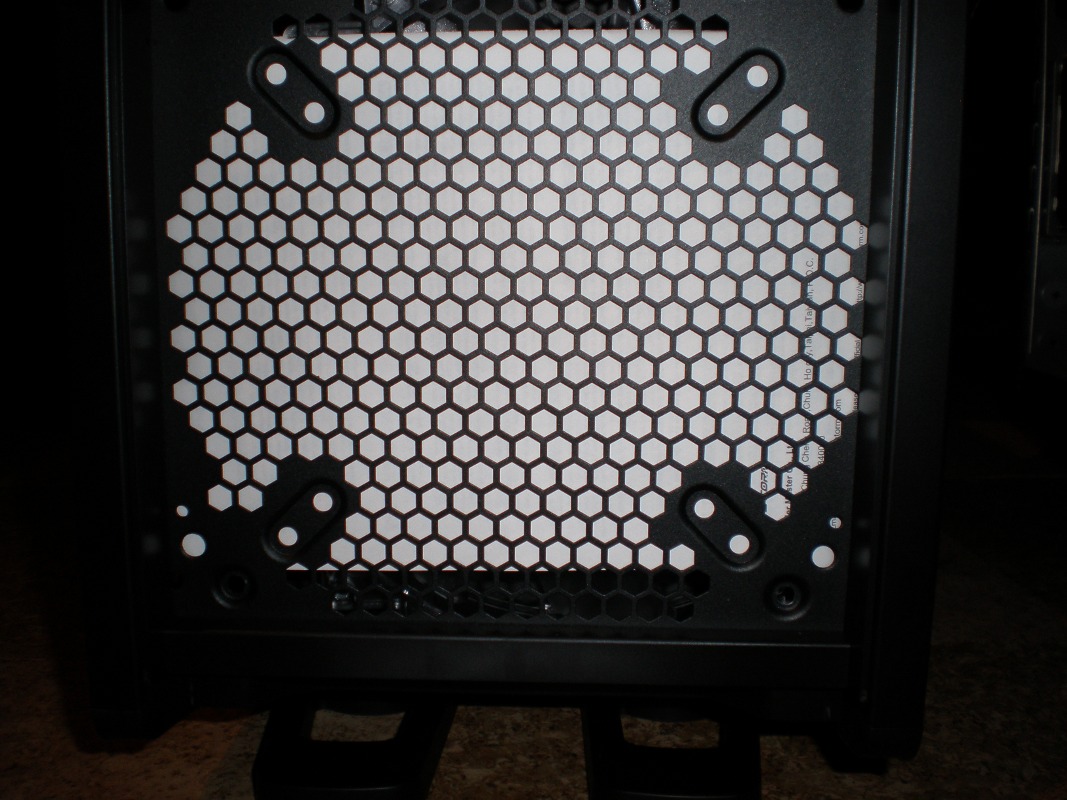 Eine weitere Änderung kommt nach dem Entfernen des vorderen Staubfilters zum Vorschein: Es ist nun auch möglich den 200mm Lüfter duch kleinere Modelle Auszutauschen. Es sind Bohrungen für einen 120mm oder 140mm Lüfter vorhanden.