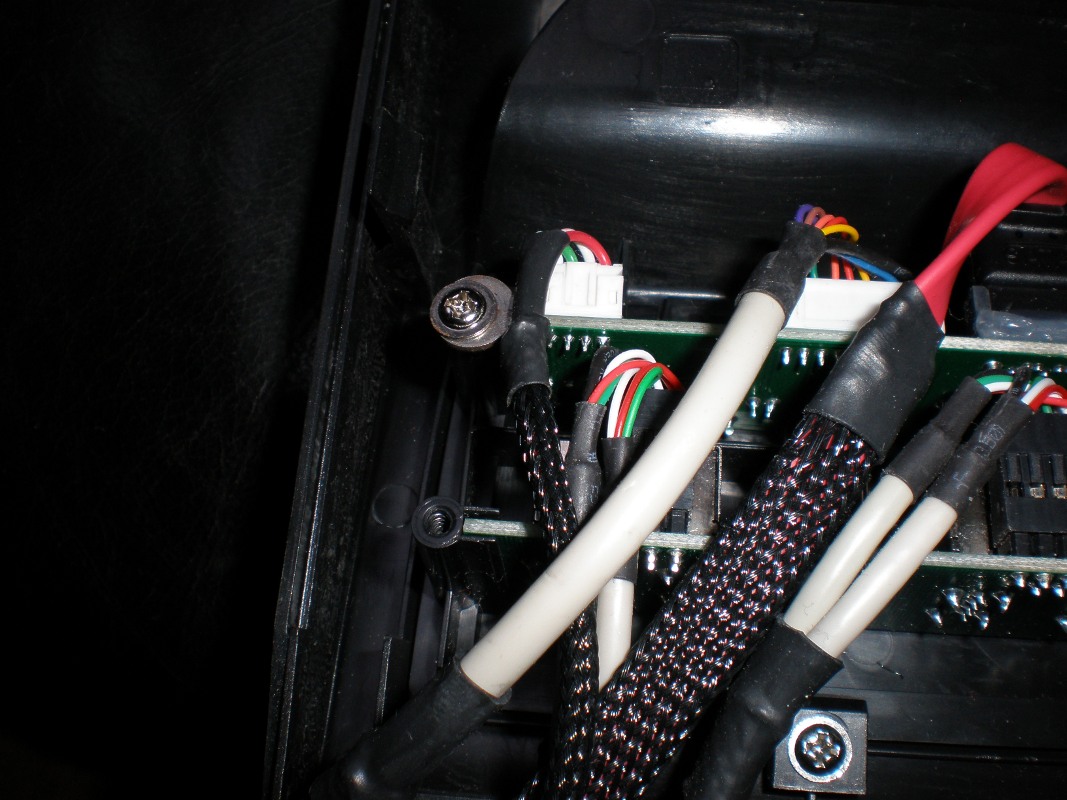 Die letze Veränderung ist zwar nur eine kleine, aber dafür eine imho sehr gelungene. Die Schrauben mit denenn die Platinen des Frontpanels befestigt sind, haben nun einen Größeren Kopf-Durchmesser. Ich selbst hatte das Poblem, dass die Platinen nicht gescheit gehalten wurden und ich deshalb mein Headset nicht richtig eingestecken konnte. Darum habe ich eine Unterlegscheibe unter die Schraube gapackt. Hier nun Bilder zur Verdeutlichung: