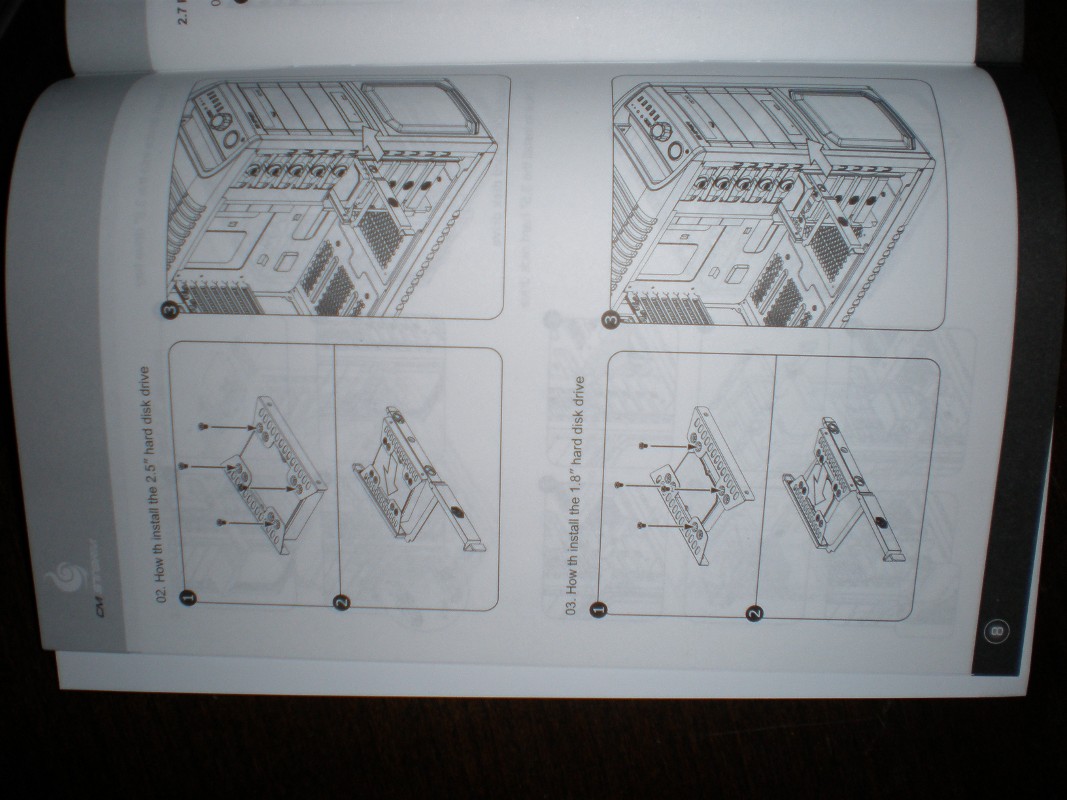 Zudem ist eine Seite mehr vorhanden, die die Funktionsweise der Halterung für kleine Festplatten beschreibt: