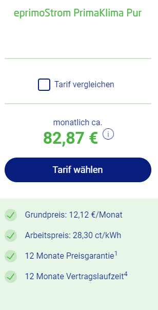 auf Check24 vergleiche ich gerade Stromanbieter, um zu wechseln. Unser gegenwärtiger ist EPRIMO. Anfangs war der mit 28 ct/kWh auch noch echt super, bis er dann nach 1 Jahr auf fast 40 ct/kWh aufgeschlagen hat: