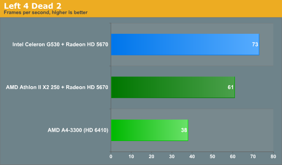 Ich habe keine Zahlen zu den aktuellen Generationen, aber ein Celeron G530 mit HD5670 hat in Left 4 Dead 2 einen A4 -3300 ziemlich klar geschlagen.