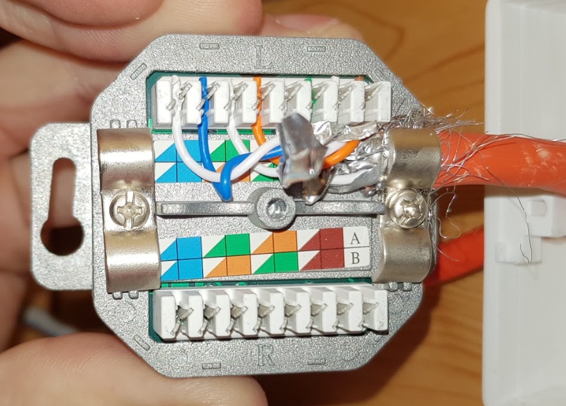 Ich wollte grad noch 3 weitere Kabel zum Patchfeld dazu machen aber bin jetzt nicht mehr sicher dass das so richtig ist. In der Dose selber hab ich nach Schema B aufgelegt. Sprich von rechts nach links: braun, weiss/braun, grün, weiss/grün, orange, weiss/orange, blau, weiss/blau. ICh dachte im Patchfeld müsste es dann gleich sein, aber hier ist die Reihenfolge unter B so wie es aussieht folgende: braun, weiss/braun, weiss/blau, blau, weiss/grün, grün, weiss/orange, orange....