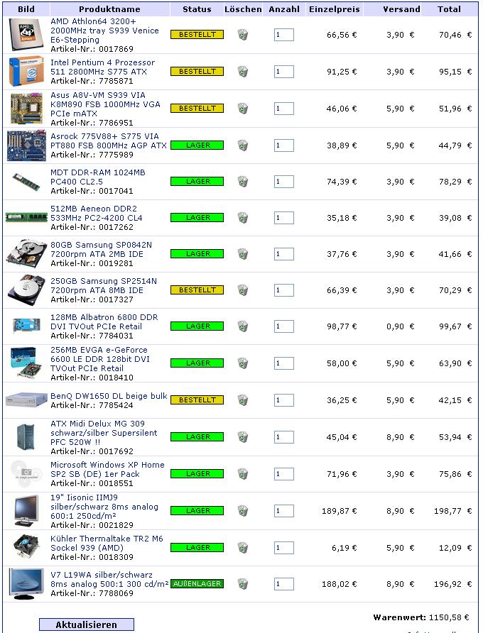 und einem TFT von Siemens 19 Zoll mit 12ms