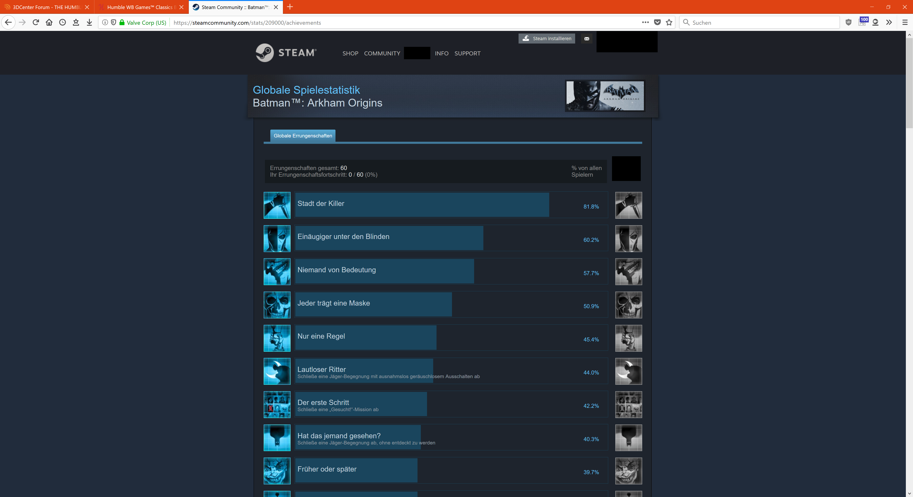 Denn gerade beim Argument "Humble-Bundles" müssten ja die Archievements von diesen Spielen nach deiner Aussage ja schlagartig an Seltenheit zunehmen, selbst bei "Tutorial"-Archievements....plötzlich 10K, 100K oder Mio? mehr Verkäufe können besonders bei Indies / kleinen Publishern schon mindestens eine Verdoppelung der Verkäufe sein...
