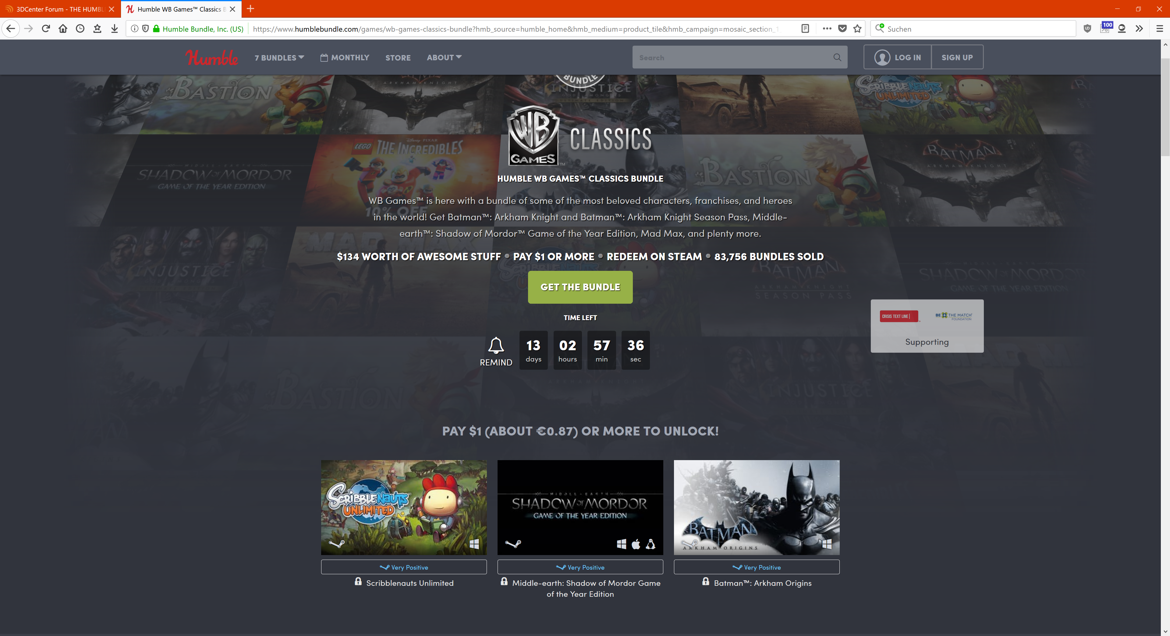 Nun gab es vom 23.10. bis 06.11.2018 das erwähnte halbwegs interessante Humble-Bundle. Die Tier 1-Spiele (1$) waren: