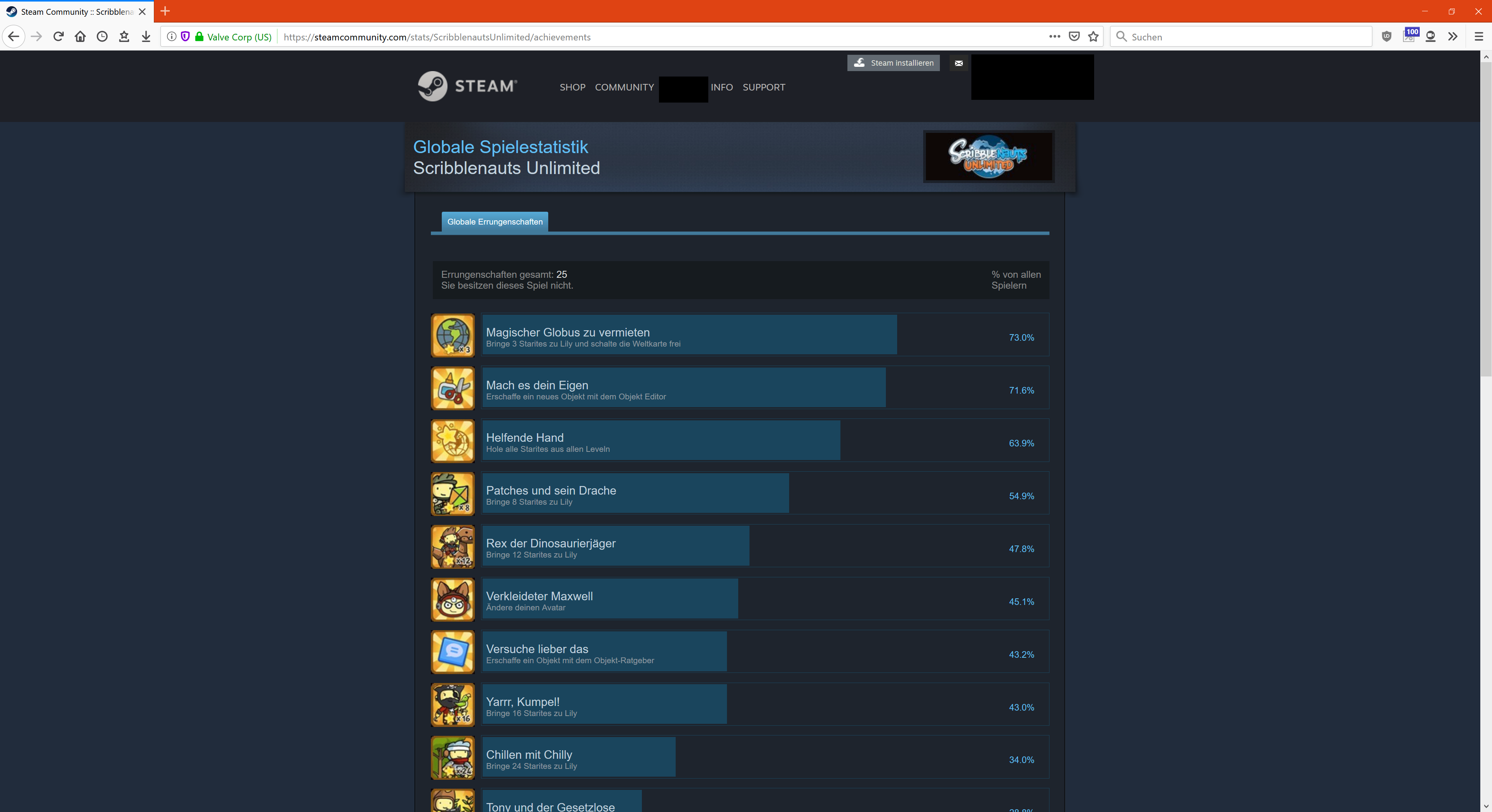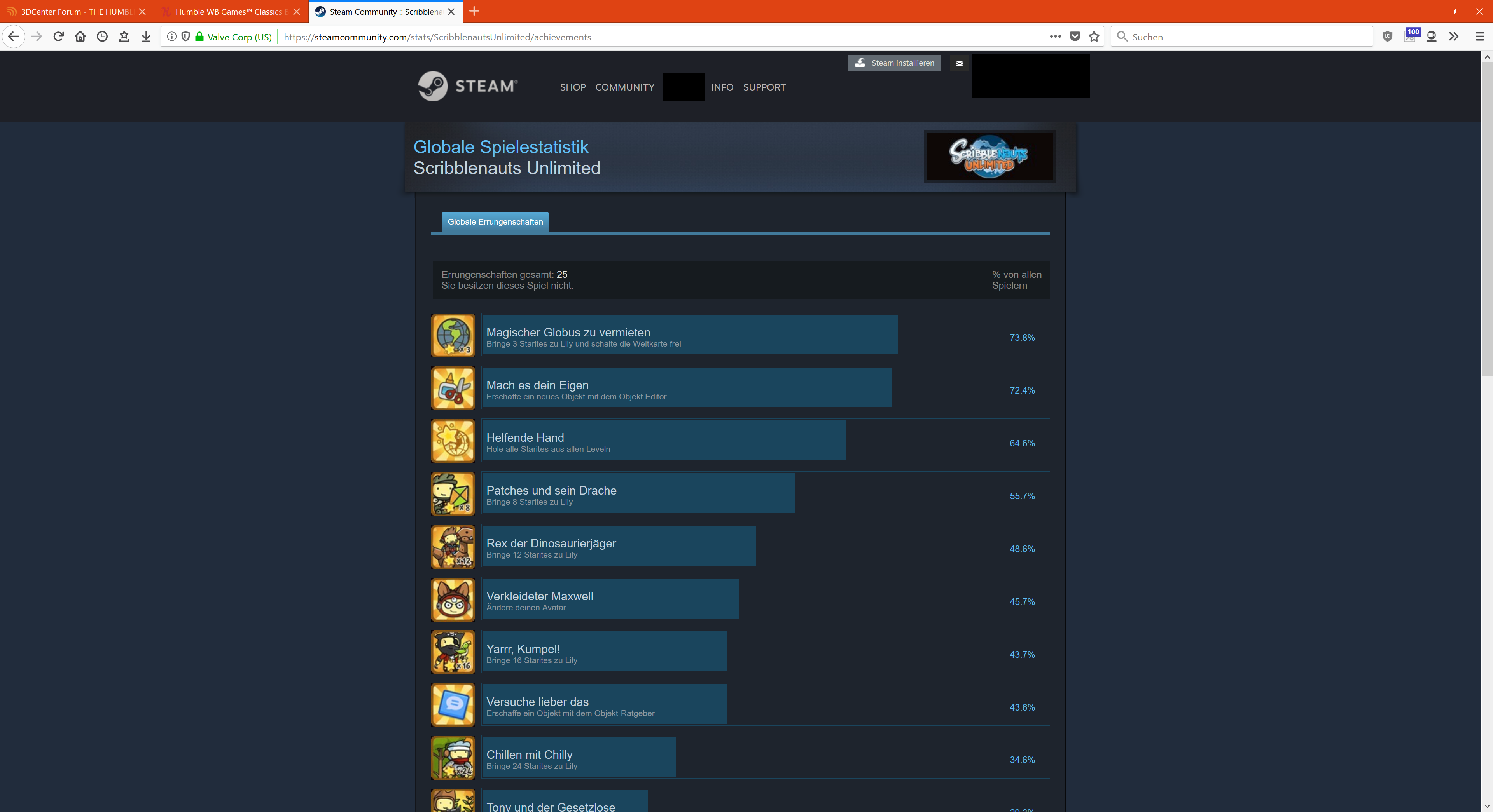 "Scribblenauts Unlimited" hat beispielsweise den größten Einbruch mit 1%. Wenn die Achievements wirklich alle Käufer repräsentieren würden, dann wären 1% = ca. 250.000 Käufer und somit 100% = ca. 25 Mio. Verkäufe. Und das ist sehr unwahrscheinlich.