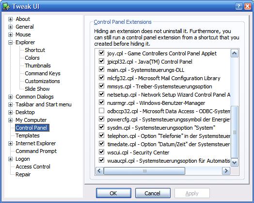 Gibt es in Windows oder der Registry einen Pfad, wo ich Verknüpfungen in der Systemsteuerung (Software, System, Benutzer etc) löschen kann?