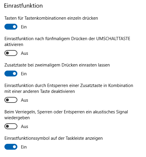 Erleichterte Bedienungshilfen (Windows Systemsteuerung) --> Keine Funktion gefunden
