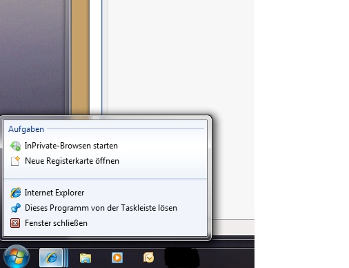 unter Win 7 kann man ja wenn man das Icon des I.E. in der Schnellstartleiste anklickt (Rechtsklick) normalerweise die zuletzt besuchten Seiten sehen und auch öffnen. Das ist bei mir nicht mehr sichtbar. Siehe Anhang.