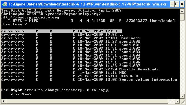 Testdisk erkennt die Partition "Downlods" aber ich weis nicht wie ich sie wieder hergestellt bekomme.