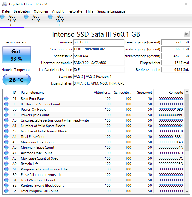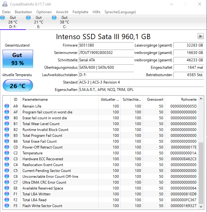 Speicher: Samsung 980 Pro 2tb, Samsung 870 evo 500 GB, Intenso 960 GB