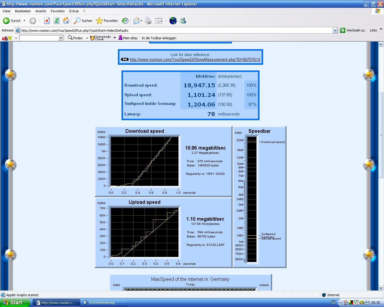 Hi. habe heut meinen neuen dsl anschluss bekommen (hatte bisher 2 mbit bei der versatel) und sollte eigentlich mit 17-18 mbit surfen können. aber irgendwie komme ich nur auf 8. auch der upload ist nur halb so schnell wie er eigentlich sein sollte. woran könnt es liegen? auf dem pc meines bruders ist wenigstens der upload so wie er sein sollte