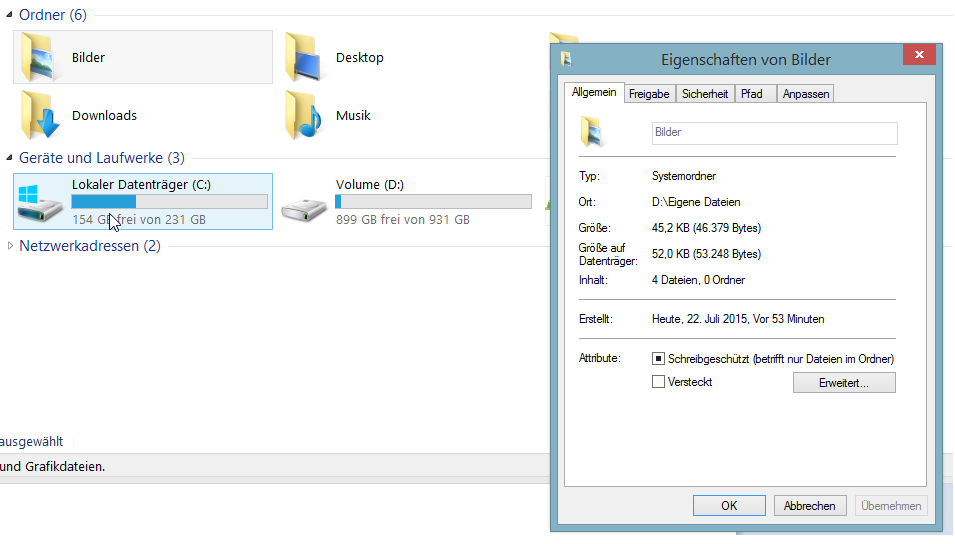 Ich hatte dementsprechend einen Ordner "Eigene Dateien" auf der HDD erstellt und dorthin schon mal den Ordner "DOkumente" verschoben - dieser Ordner "eigene Dateien" wird aber nicht mehr angezeigt. Laut Dateipfad ist der Ordner Dokumente jedoch in eben diesem Ordner - ausgeblendete Elemente habe ich aktiviert.