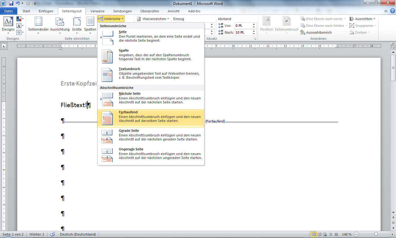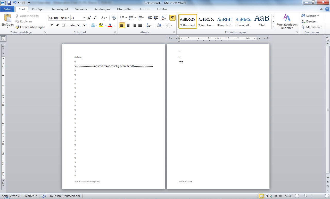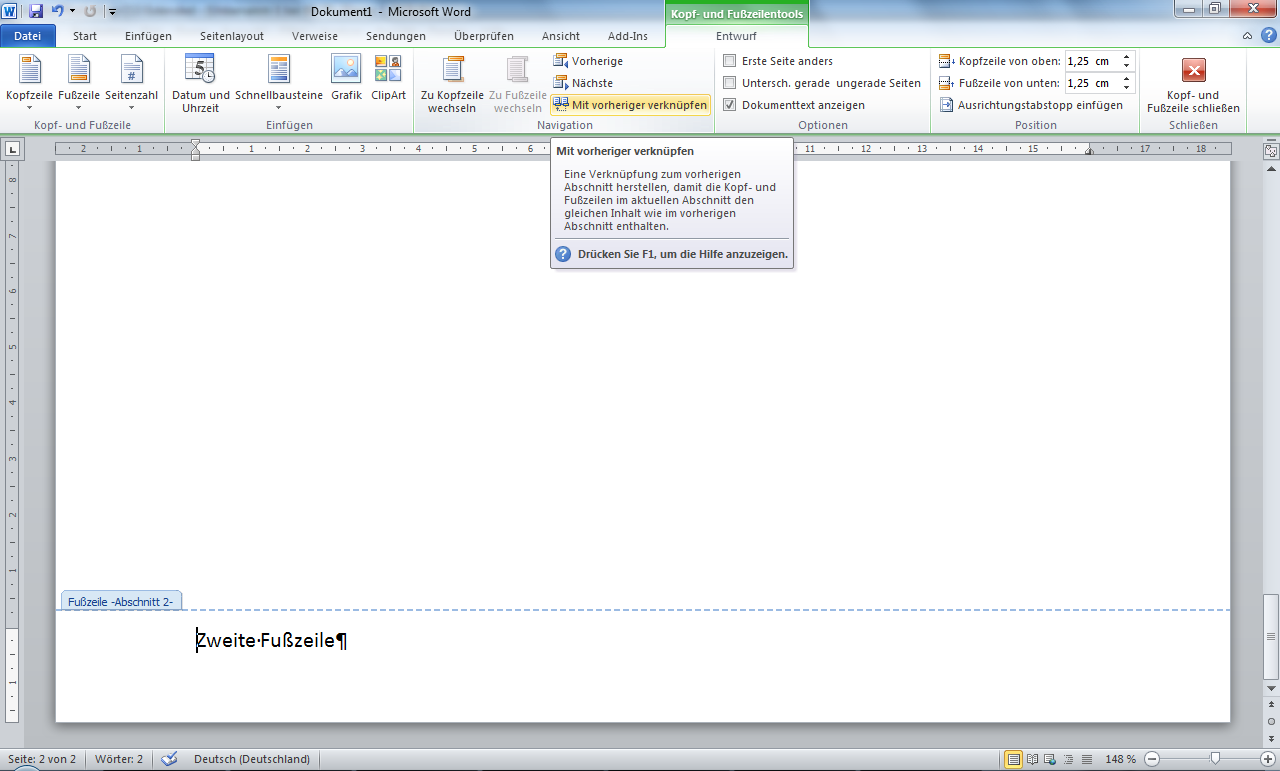 Der Inhalt der Fuß und Kopfzeilen ist immer gleich in einem Worddokument.