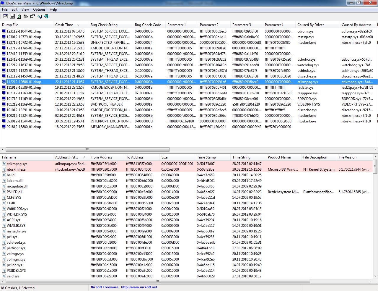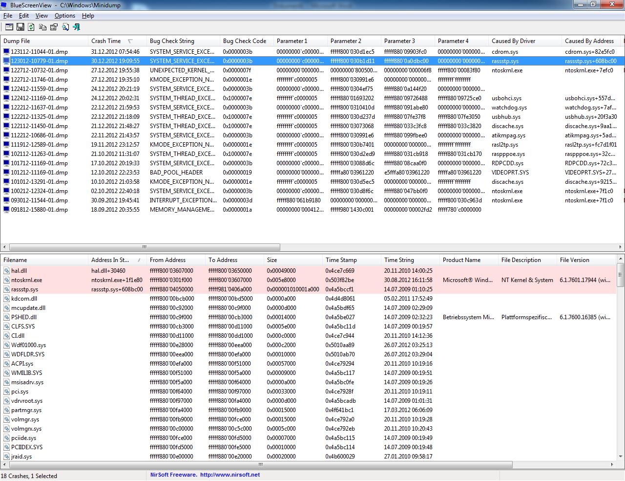 Anbei die Auswertungen von Bluescreenview, die mich nicht wirklich weiterbringen.