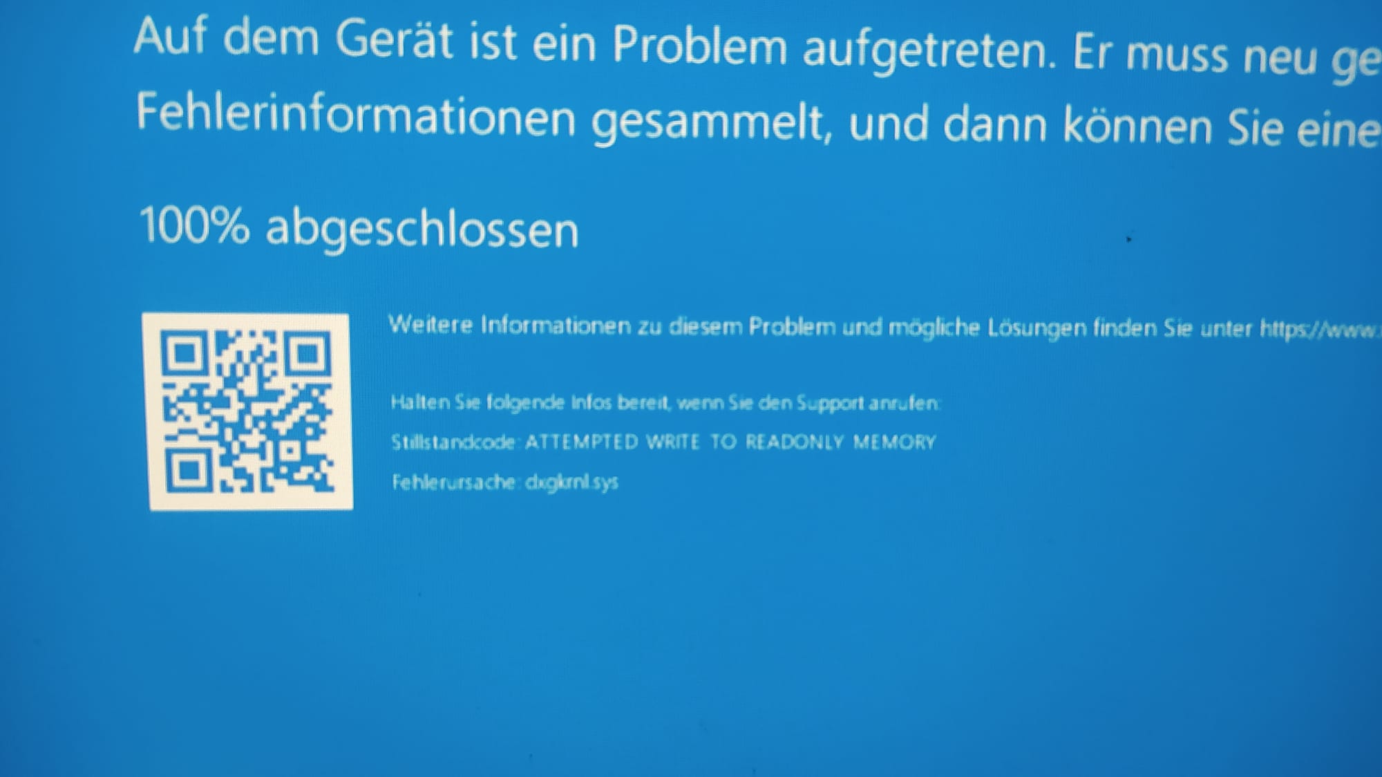 - ein mutmaßlich dritter beim Umschalten aus dem Gaming zu Windows (Blackscreen, aber der selbe drönende Ton wie bei den beiden Bluescreens zuvor)