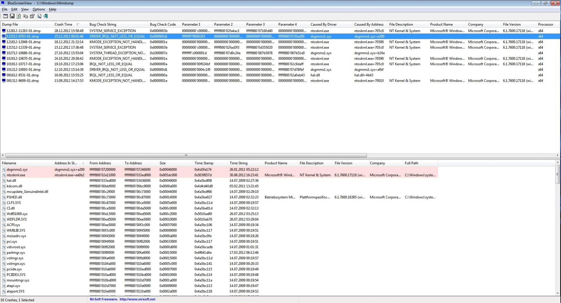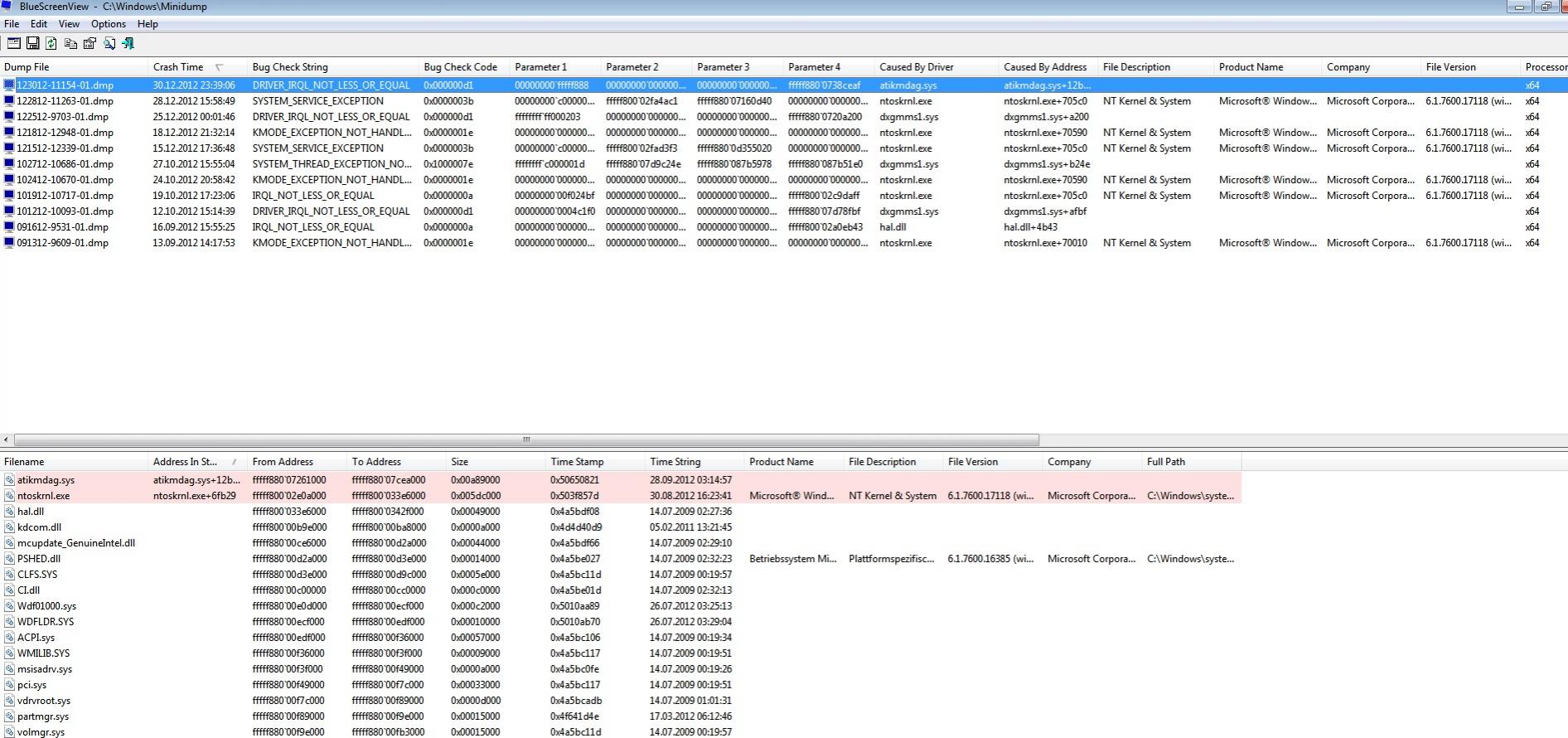 Die Screens von Bluescreenview sind nur seitdem das System neu aufgesetzt wurde - davor waren es nochmal etwa doppelt so viele in einer höheren Frequenz.