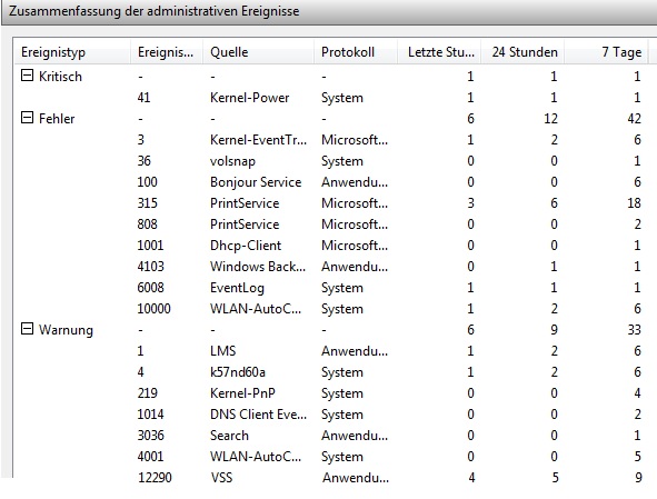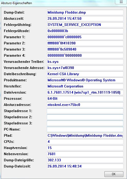 Kann jemand etwas mit den Minidump- Einträgen anfangen? Auf was deuten sie hin? Auffällig ist meiner Meinung nach, dass immer ntoskrnl.exe beteiligt ist. Kann man damit Ursachen ausschließen oder gar Ursachen fest machen?