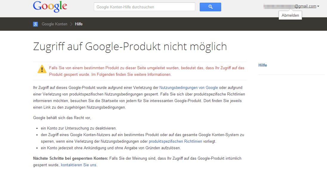 Ich habe vor einiger Zeit (ist schon Jahre her, war noch jung und dumm) ein paar Simpsons-Videos auf Youtube hochgeladen. Wurde monatelang nicht beanstanded bis ich ein paar Wochen im Urlaub war, zurückkam und mein Konto gesperrt war. Nennen wir dieses gesperrte Konto 'A'. Dummerweise ist dies auch das Konto, in dem ich tausende Mails, Kalender, Kontakte und wasweissichnichtnoch habe.