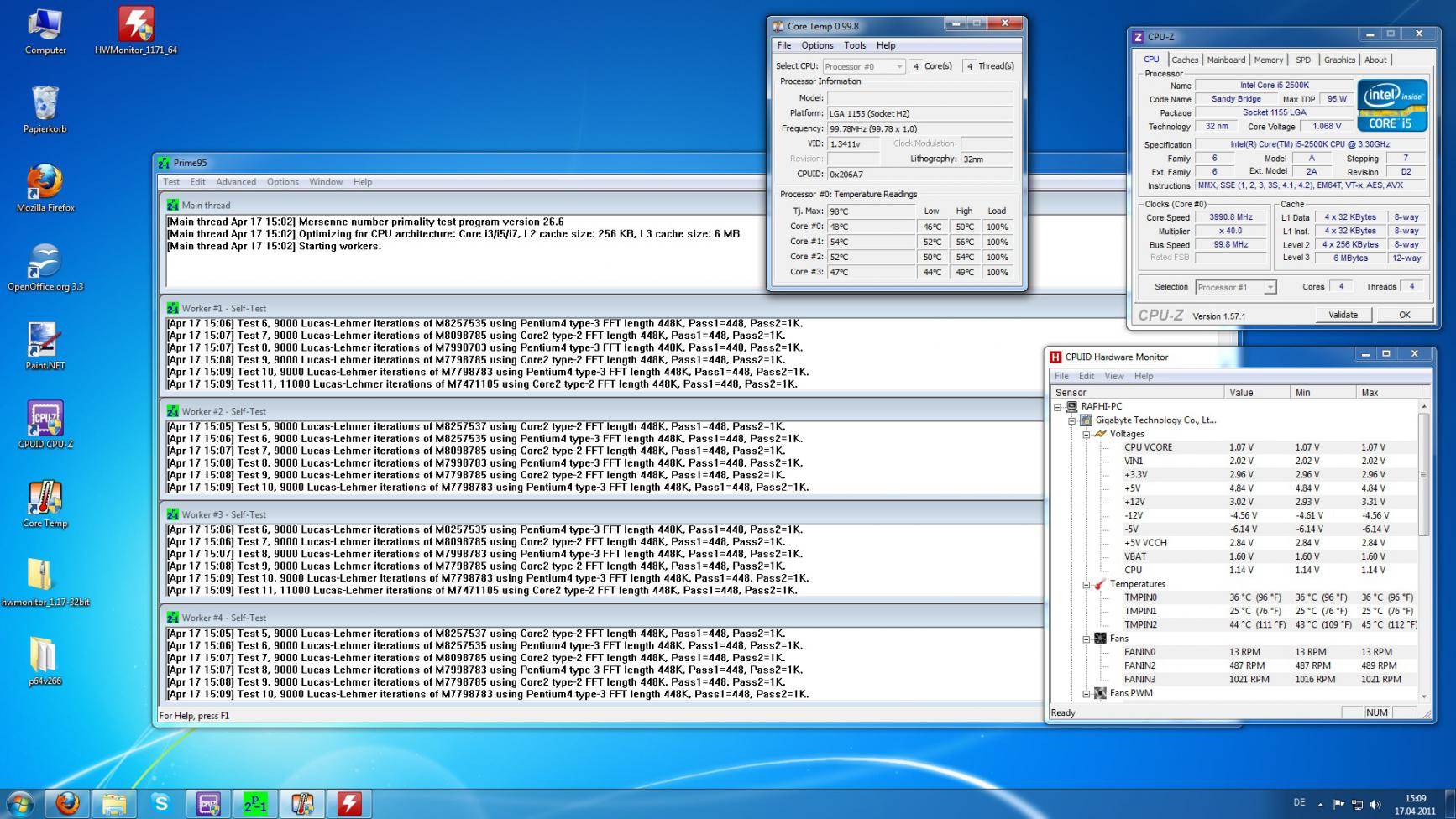 Hallo zusammen ich habe einen Intel i5 2500k auf 4 GHz übertaktet mit im Bios eingestellte 1,22V VCore. Nun wollte ich unter Windows den Wert auslesen aber ich bekomm da mit 3 Programmen 3 verschiedene Werte von denen keiner mit denen im Bios übereinstimmt. Warum werden da solche komischen Werte ausgelesen die überhaupt nichts aussagen?