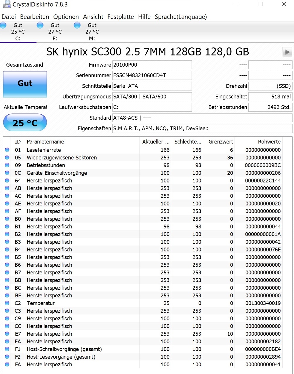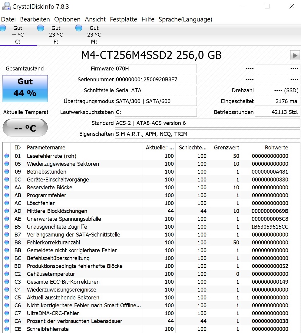 Nun habe ich diese mp4-downloads auf einen HDD-Ordner verlegt und seither Ereignisruhe. Ist die SSD evtl. schon geschwächt oder nahezu am Ende, obwohl 44% GUT angezeigt wird ?