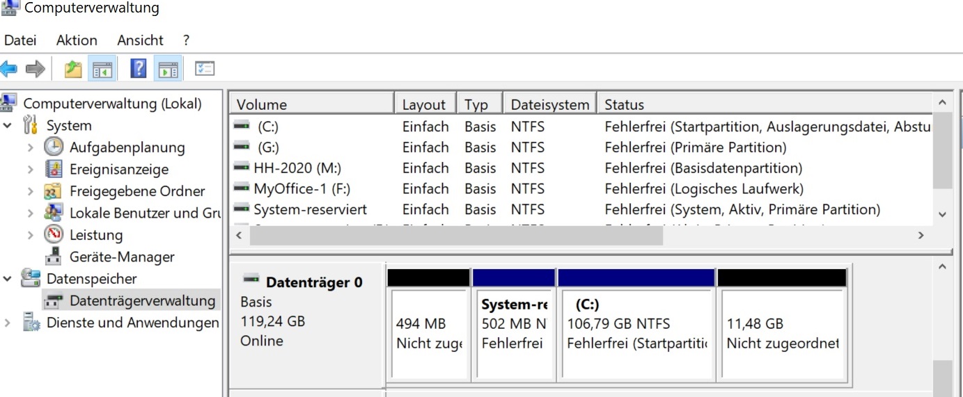 C: Zwei Partitionen (Dualboot mit W7, jedoch sehr lange nicht mehr in Verwendung)