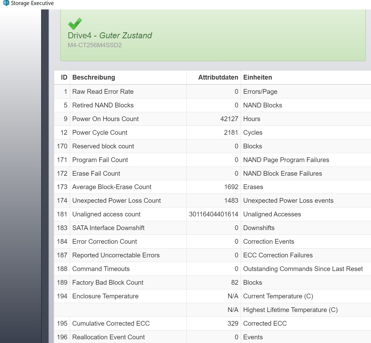 Und die SSD mit über 42000 Betriebsstunden nicht einmal ihr halbes Leben hinter sich hat