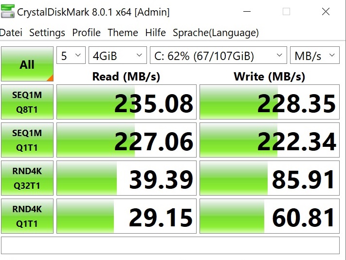 vielen Dank und habe mal checkdrive angeschmissen. Ich sage mal, bei solch Standard-Hardware(SSD) sollte ein Überprüfung/Check nahe hausfrauenfreundlich bleiben (=CDI/checkdrive). Insofern habe ich mich weniger geirrt, als ich "GUT" glaubte. Klar, war falsch, weil die hausfrauenfreundlichen Anwenderanalysen aber leider nicht mehr hergeben.