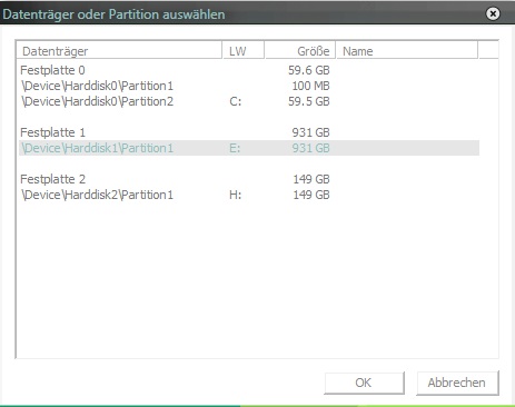 In Truecrypt wird Festplatte wieder erkannt, aber nicht mit den Partition sondern als ganzens (Bild1)