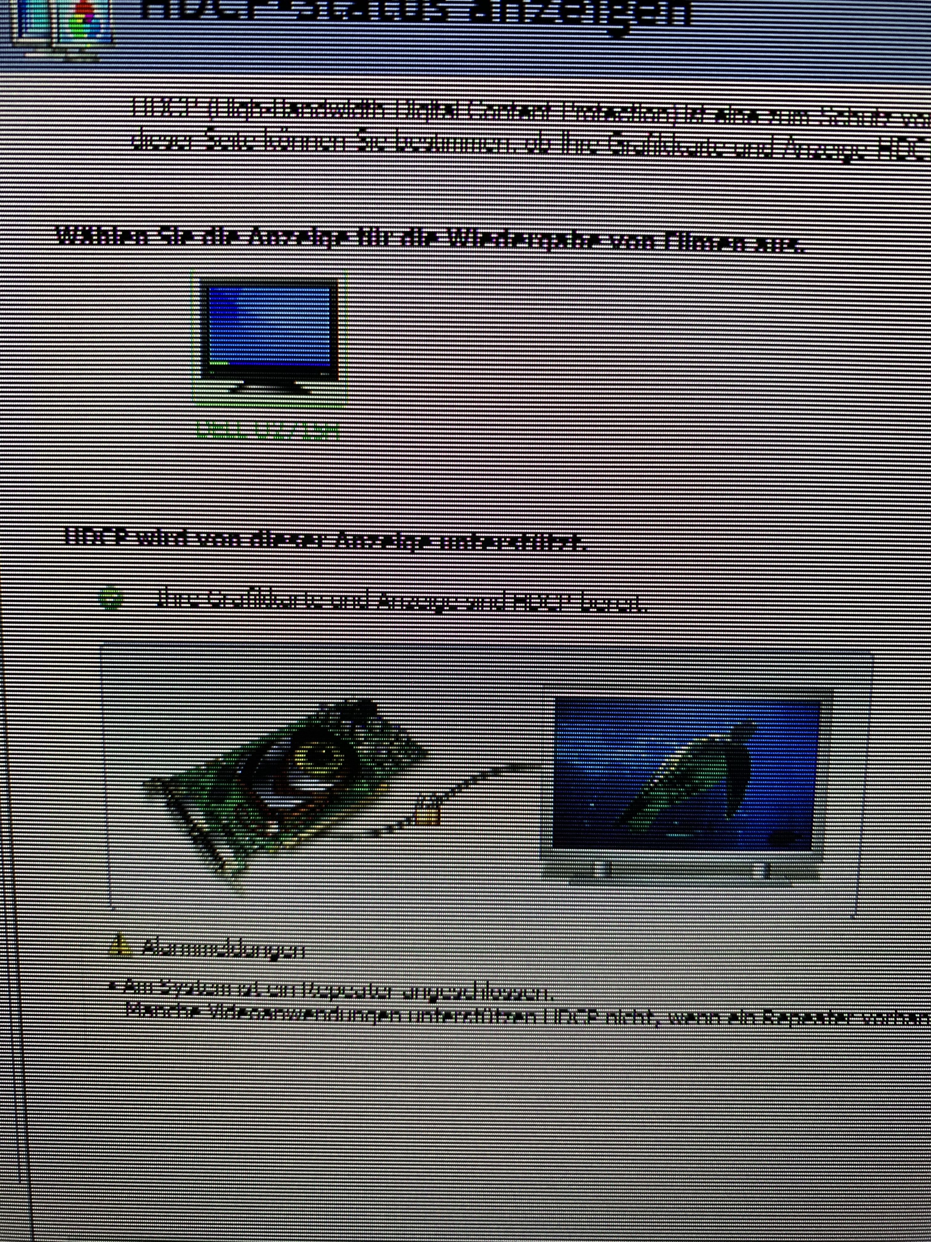 Anbei sind aktuelle Bilder zu diesem Problem zu finden, genau wie in einem sehr alten von mir unten verlinkten Thread, wo ich schon mal 2017 Hilfe hier im Forum gesucht hatte. Die kurvenförmigen Streifen auf den Bildern muss man sich an der Stelle einmal wegdenken, die kommen von der Aufnahme mit dem Smartphone. Dahinter sieht man aber die in sich zusammengezogene Schrift und die horizontalen "Interlaced" Streifen.