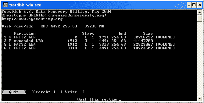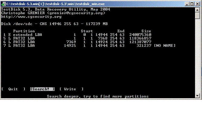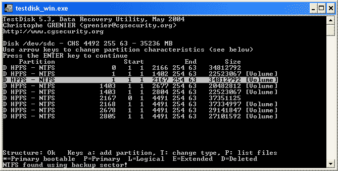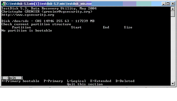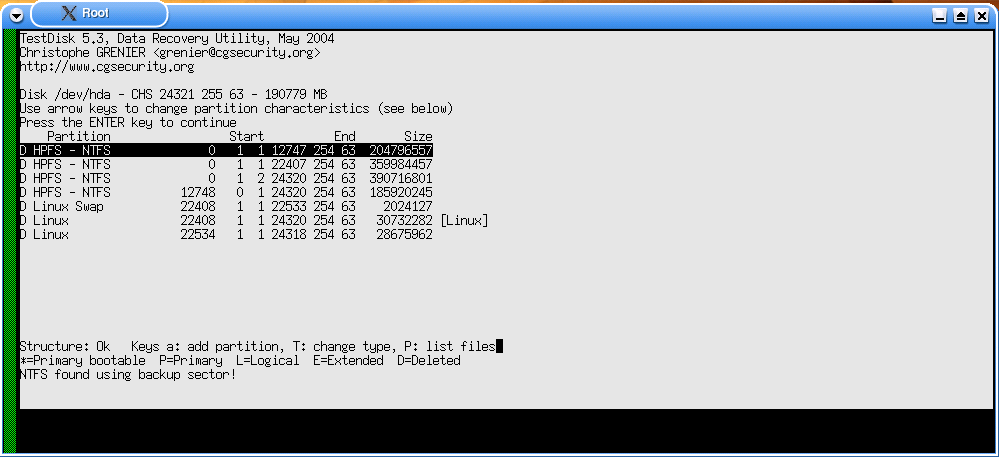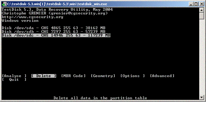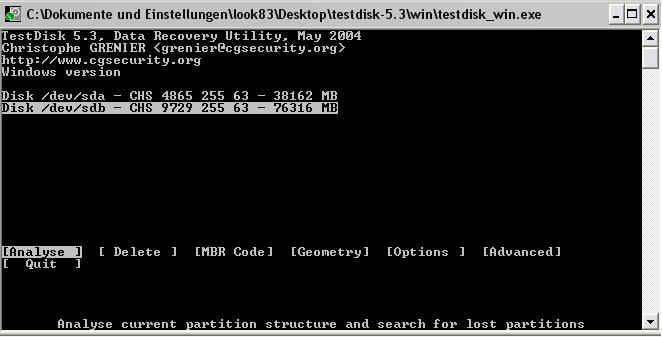 Um die Struktur richtig in Griff zu bekommen, solltest du gleich nach dem Start von Testdisk mit Pfeil auf Delete gehen und den MBR löschen und mit y bestätigen.