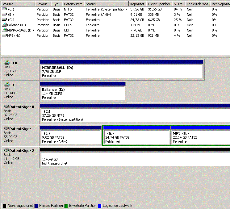 Jetzt werden deine Partitionen (Volumen) gelistet [siehe