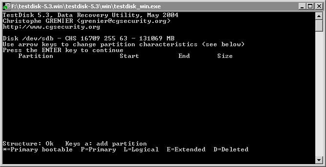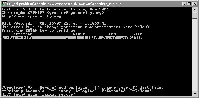 Ist einfacher als es aussieht da Testdisk automatisch immer mit Enter zum nächsten Menu springt.
