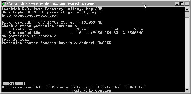 Testdisk zeigt nicht unbedingt bei primäre Partitionen ein Volumen an.