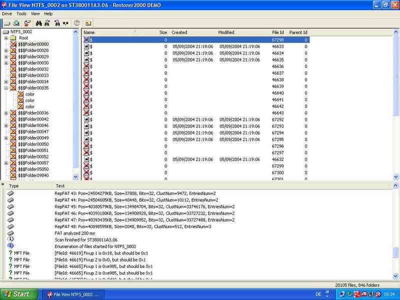 Hab grad mal das Restorer2000-Demo drüberlaufen lassen, Ergebnis siehe Anhang, fürchte, ich darf mich endgültig von meinen Daten verabschieden.