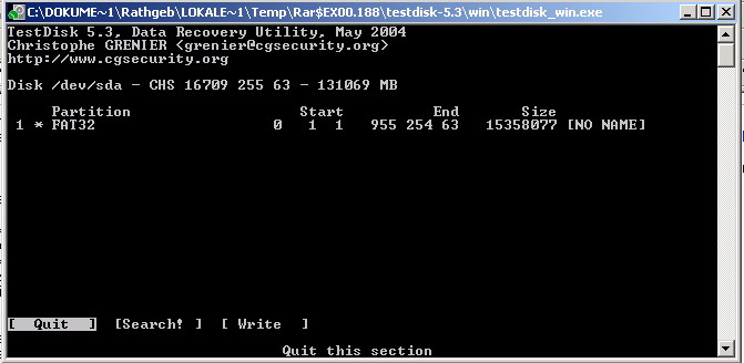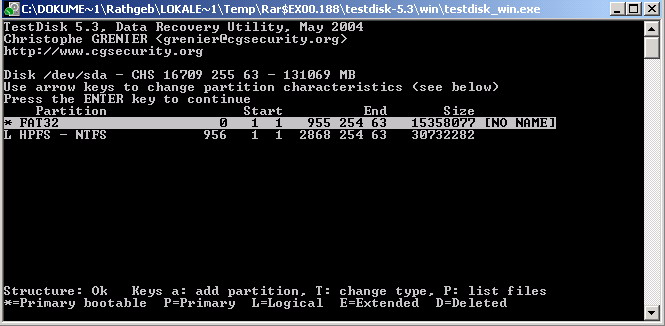 Die Partitionen könnte man da auch mit dem Pfeil auswählen und durch drücken des Buchstaben p überprüfen ob die Daten vorhanden sind.