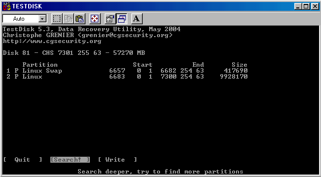 Starte Testdisk durch bis zu Write-Screen.