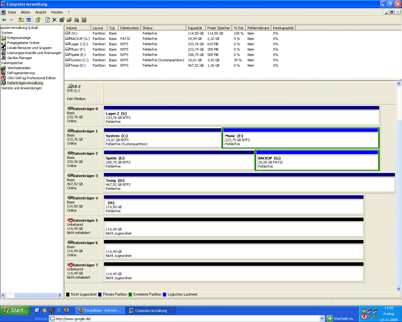 Hab mir auch erst gar keine Gedanken gemacht, mein Windows läuft jetzt wieder und dann wollte ich auf die externe Platte, um an meine Daten zu kommen. Dabei stellte ich dann fest, das sie im Arbeitsplatz nicht angezeigt wird.