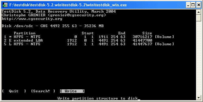 5 L HPFS NTFS 1677 1 8 9963 254 63 133130585