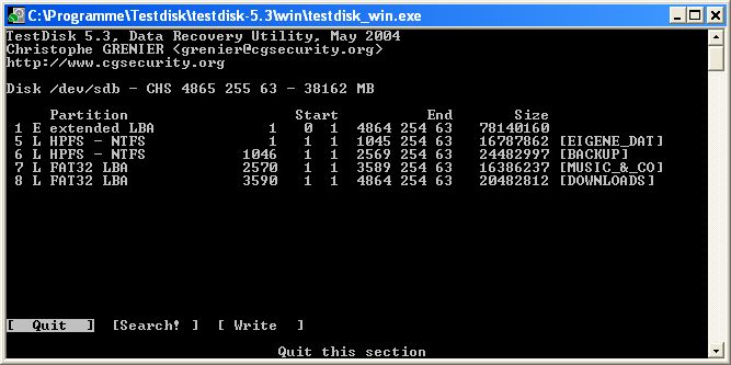 Unter WinXP und Suse sind alle Partitionen und Daten ganz normal und alles ist in Ordnung. Unter Server2003 sind aber die beiden kürzlich bearbeiteten Partitionen nicht auffindbar. Vor dem resize waren sie noch da.