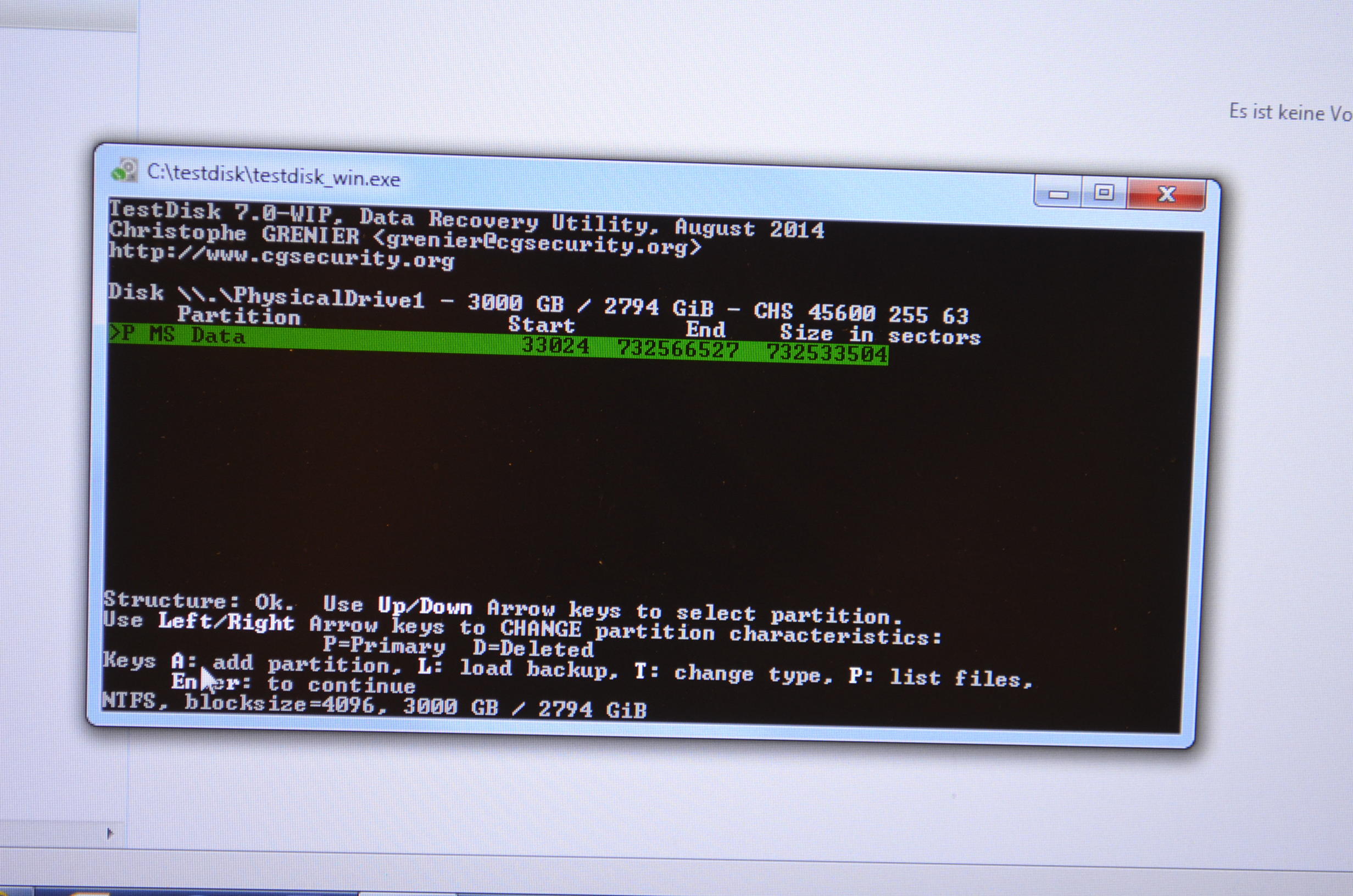 So Ihr lieben Helfer Ich bin ein Stück weiter gekommen mit dem Programm Testdisk habe ich nun gemäss dem ersten Video folgendes Analysiert: