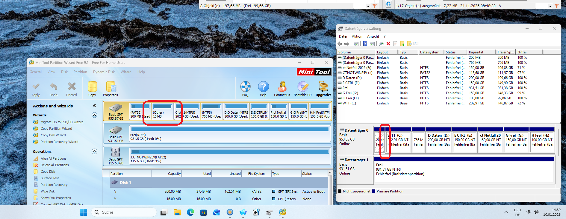 ein ganz kleines Problem hab ich, hoffentlich kann mir jemand helfen. Ich habe eben durch Dummheit eine kleine Partition meines Datensarges gelöscht. Ich weiss nicht genau wie die hiess, ich vermute es war eine Wiederherstellungspartition? Es geht um die 16MB da unten, die beim Formatieren reserviert werden.