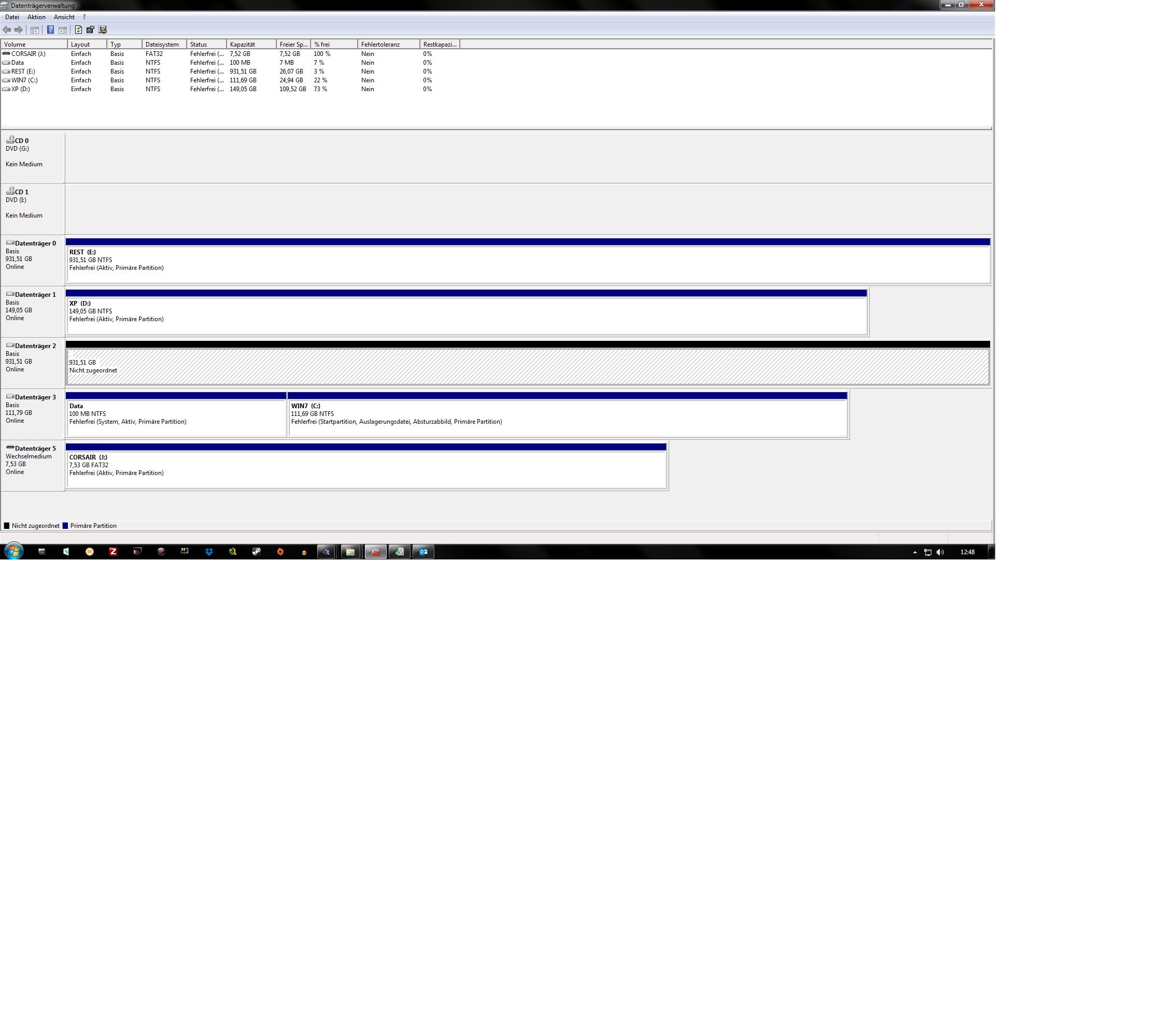 Die Datenträgerverwaltung zeigt folgendes Bild.