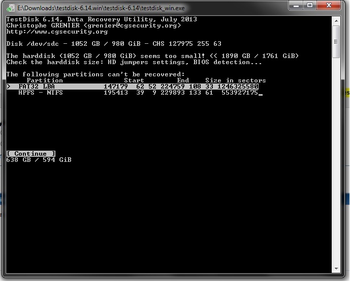 Nun habe ich mich im Vorfeld bzgl der Partitionsherstellung mit Testdisk schonmal etwas belesen und die Analyse der Platte gestartet (diese wird mir bei TD auch korrekt als 1TB Platte angezeigt).