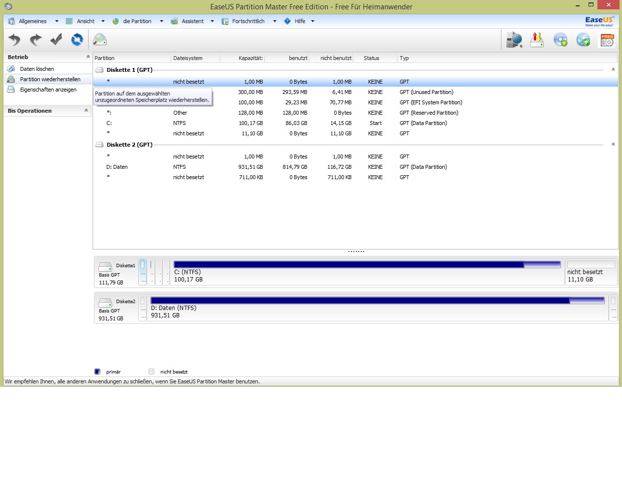 Versehentlich entfernte Partition(en) wiederherstellen