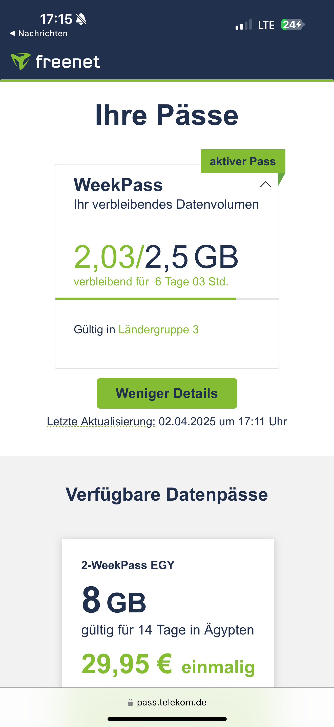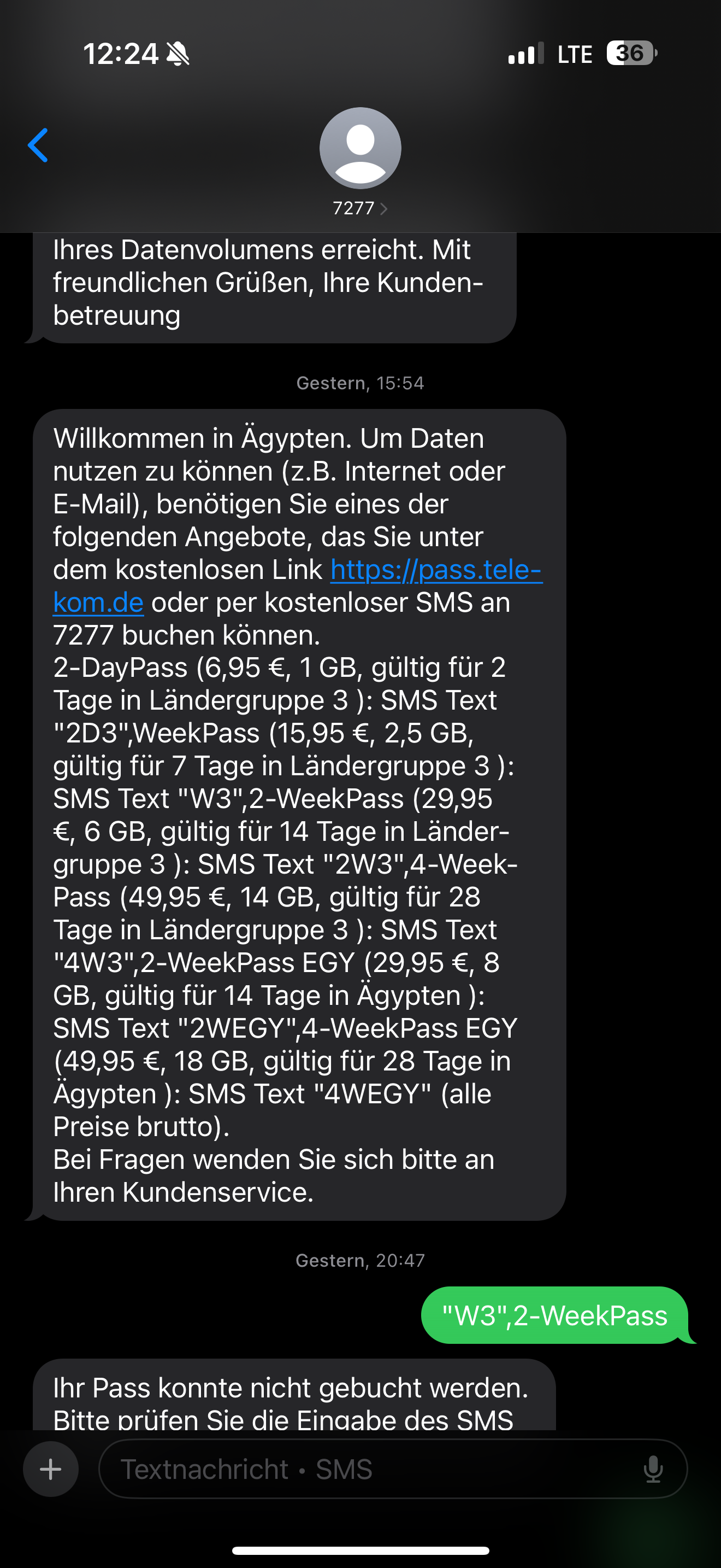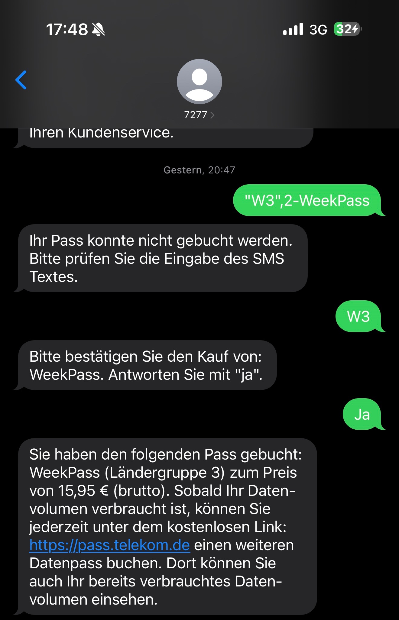Habe im Ausland versehentlich einen falschen „Week-Pass“ bei https://pass.telekom.de/ gebucht, weil die Info über diverse Pässe in der SMS ohne Absatz (zb Leerzeile) angegeben wurde