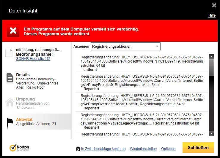 Bedrohungsname: SONAR.Heuristic.112