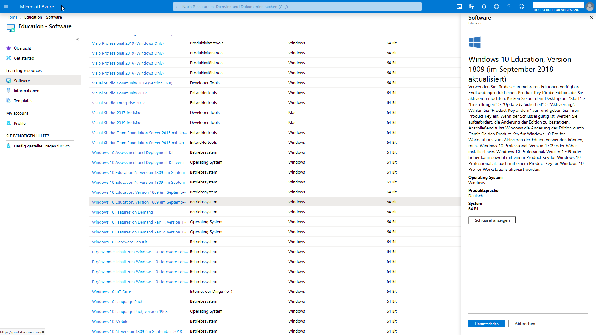 Ich habe auf einem anderen PC (OS: Windows 10 1909 Education) mit dem Media Creation Tool 1909 einen Setup Stick für Windows 10 x64 erstellt. Diesen dann in den betreffenden PC gesteckt und gebootet. Einfach durchinstalliertt und Windows 10 auf der SSD drin installiert. Davor übrigens ein LAN Kabel reingesteckt als Internetverbindung. Beim Installieren wurde ich nach einem Lizenzkey gefragt. Also gut, habe ich von portal.azure.com einen Key mittels meines Azure DevTools for Teaching Accounts besorgt. Für Windows 10 1809 Education (genauer Screenshot unten). Den dann eingegeben, den hat er auch geschluckt. Schließlich musste ich mich anmelden. Ich musste mich mit einem Geschäfts oder Schulkonto anmelden, mein privater MS Account den ich sonst immer nehme ging nicht. Also gut, habe ich eines meiner zwei Geschäfts/Schulkontos genommen. Daraufhin musste(!) ich eine 6 stellige PIN eingeben - kürzere gingen nicht. Das ganze weil das als Anforderung von dem Account galt. Spätestens in dem Moment war ich schon arg verwundert was da abgeht. Ich habe weitergemacht und einen Firefox und so installiert. Ging auch problemlos. Beim Anmelden sah ich, dass links unten im Win 10 ein "Anderer Benutzer" sah, wie ich es nur von ADs kenne. Nur so, hier daheim privat habe ich kein AD laufen und auch keine Domäne. Konnte mich auch anmelden. Daraufhin habe ich in der Computerverwaltung nach lokalen Benutzern gesucht - und mein eigentlicher Account ist nicht drin, nur mein erstellter Testaccount, siehe Screenshot. In den Windows10 Einstellungen habe ich dann gesehen, dass ich mich ungewollt mit meinem Uni Account in das Azure-Active Directory gebracht habe.