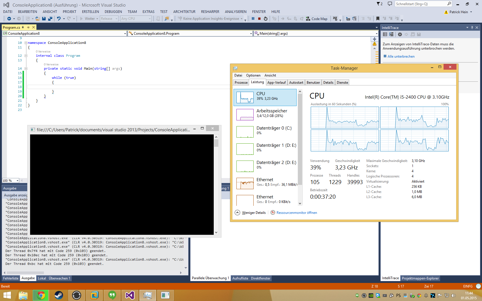 Wie zu erkennen ist dümpelt die GPU bei etwa 72% rum und die CPU zwischen 50-75% bei in dieser Szene 95FPS.